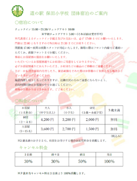 道の駅 保田小学校は、未成年のお客様のみでのご宿泊に際し、慎重に対応させていただいております。
